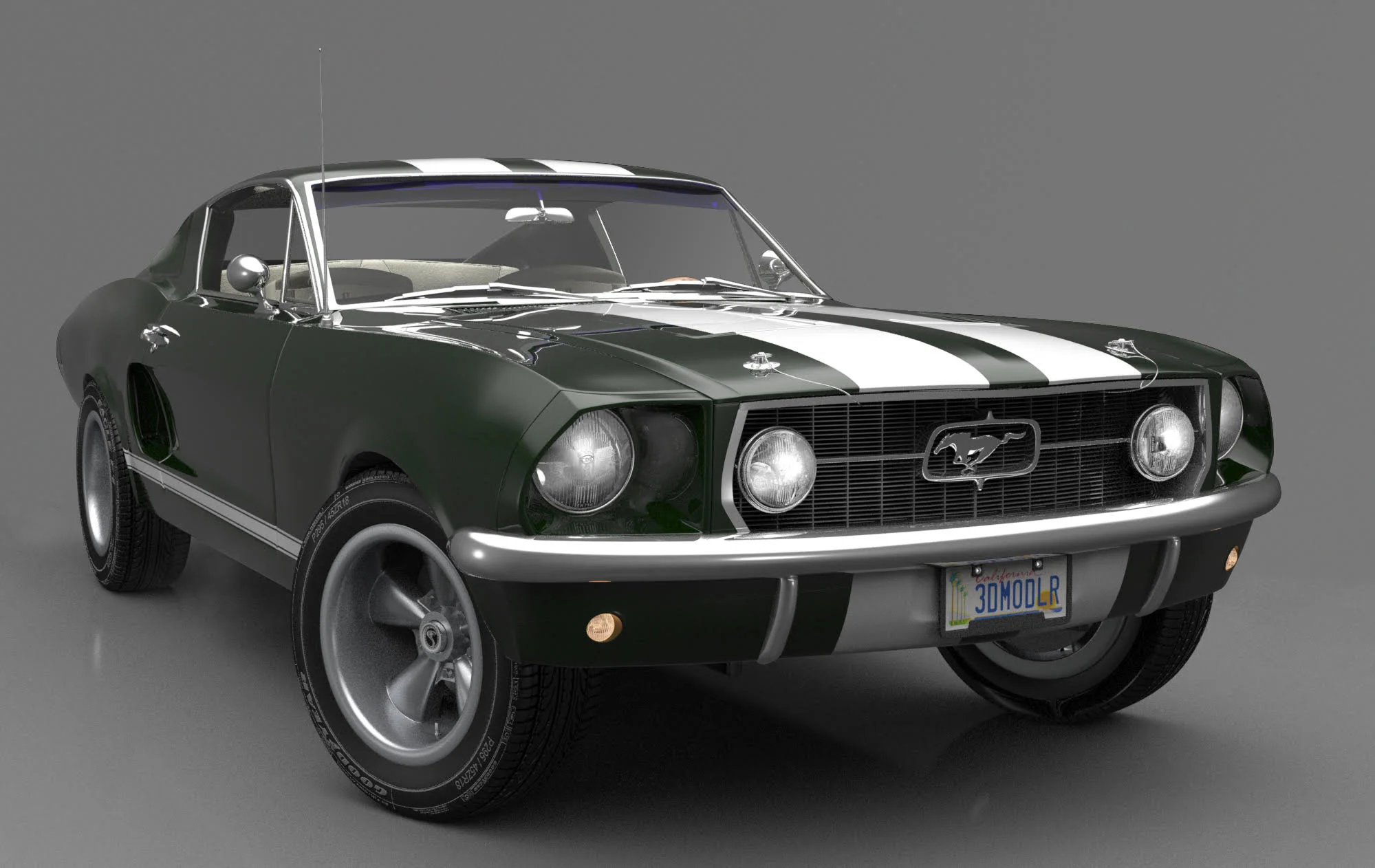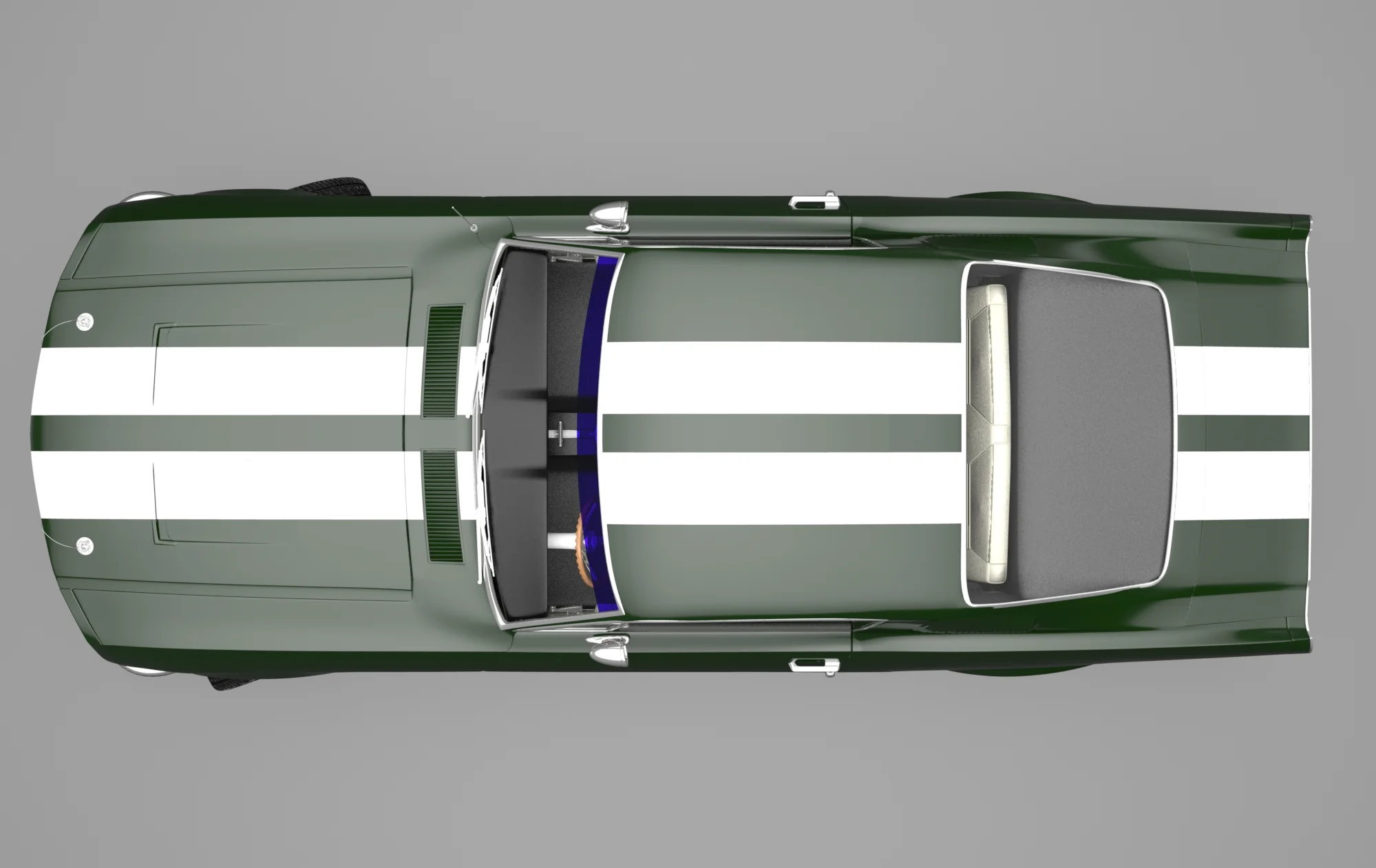 I began this project with the intent of modelling a Shelby GT500. However, I sampled several reference images from similar years, so this beast is really more of a Frankenstein custom build. I used the Shelby GT500 as my main source of inspiration because when it was first introduced, Carroll Shelby himself said it was “the first car I’m really proud of,” and I feel the same about this 3d build. The exterior texture is a dark moss green with white stripes and the interior is a matte black with beige leather to really emphasise the power and elegance of the 67 GT500’s race-car. Shelby Mustang really came into its own both stylistically and performance-wise in 1967. After all, It was a 67 Shelby GT500 that starred as “Eleanor”, the ultimate dream car, in the movie Gone in Sixty Seconds, starring Nicholas Cage. This project was an amazing learning experience for me. It taught me a great deal about modelling organic shapes on hard surfaces, but also about the car itself and how much goes into the design and build of such a magnificent machine.